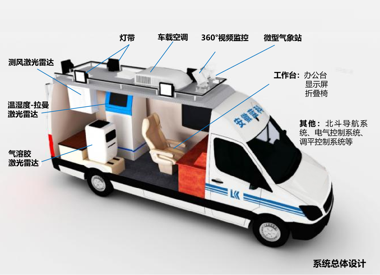 多要素大气垂直廓线移动观测系统,可灵活搭载气溶胶激光雷达、温湿度-拉曼激光雷达以及测风激光雷达等核心设备,配备多要素型气象站,集实时气象数据探测与分析、移动会议与视频会商在线监测等功能于一体,构建移动式综合应急保障观测及预警平台,可对风、温度、湿度、水凝物、气溶胶等“五条廓线”进行全天候连续观测。